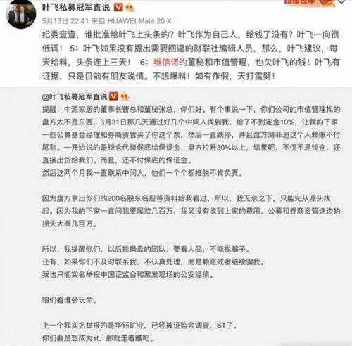 就在人们以为叶飞会继续在金融界创造辉煌时,一起惊天动地的案件爆发了。据网友爆料,叶飞涉嫌内幕交易、操纵股价等违法行为,涉案金额高达数十亿。